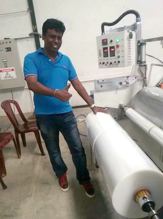 2019 年南非客戶購買了三層吹膜機 ABC1700mm,主要生產(chǎn)袋子。機器在工廠運作正常,客戶非常滿意。